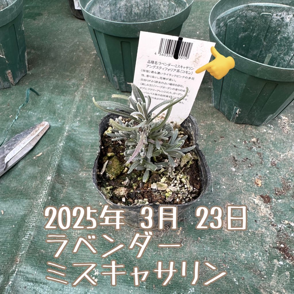 ラベンダー/『ミスキャサリン』とコモンタイム リンクを取得 Facebook × Pinterest メール 他のアプリ - 3月 23, 2025 ここ15年位買っては毎度失敗しているベンダー、諦めずに挑戦致します。『ミスキャサリン』はアングスティフォリア系、これは暑さと蒸れに弱いのよねぇ…。コモンタイムも育ててみます。何方も”コモン”と名前にございますが、如何云う意味があるのかしらねえ。何方も、用土は花ごころハーブ香草の土、控え目に元肥マイガーデンを混ぜ込みました。水遣りの頻度と量に注意して、暑くなって来たら、植木用の台に乗せたりして、風通し良くして育てたいです。 リンクを取得 Facebook × Pinterest メール 他のアプリ コメント